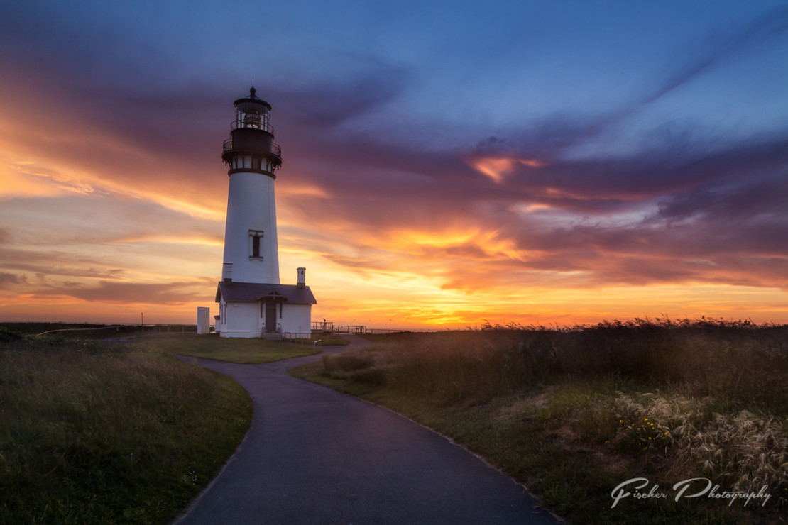 The following day was spent on the north side of Newport, Rocky Creek Viewpoint and along Otters Crest Loop. While the skies had a little more interest than the day before, at least during the day light hours, it was a prime example of why most landscape shots are taken during the ‘Golden’ and ‘Blue’ hours of the day. And oh what golden, or should I say fiery final hour of the day it was. Deciding to stay closer to Newport for our second and final night in town, we drove up to Yaquina Head Lighthouse for the sunset. The day-use only park officially closes at sunset, but they don’t kick you out till you at least get the peak light. As we stood there, almost too awestruck to remember to take photos, even the locals around us were commenting how rare this quality of sunset was. It more than made up for our flat sunset the night before.