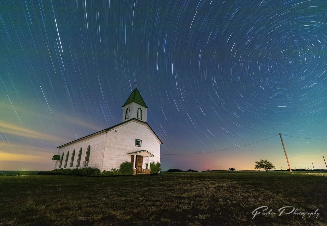 Dodson Prairie Church is located in what I’d call North Central Texas, west of DFW, but not ‘West Texas’ by any stretch of the imagination. It’s a beautifully preserved church that is still in use today, and to shot there overnight requires getting in touch with the care takers to get permission to be on the property. As you can probably tell by the position of Polaris in the photo above, the front of the church faces east, meaning to shoot out in front means facing west – not ideal for Milky Way for much of the year. But still it is a fairly dark sky location that I like to get out to once every year or so just because it hasn’t been ‘over done’ like so many other locations close to my home in Dallas.